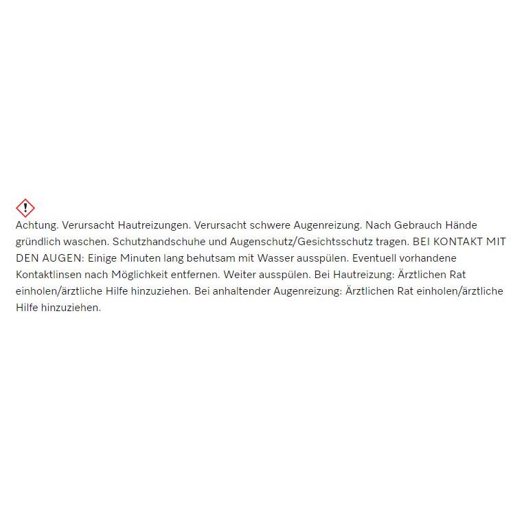 Warnhinweis: Schriftliche Anweisungen zur Handhabung eines Produkts, das Hautreizungen und schwere Augenreizungen verursachen kann.