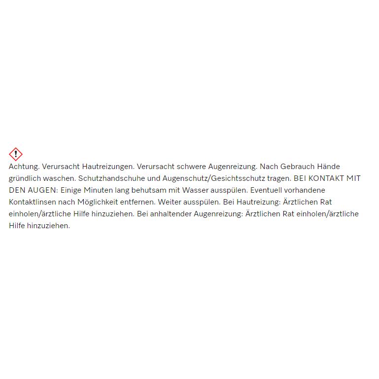 Warnhinweis: Verursacht Hautreizung, schwere Augenreizung. Anweisungen zum Waschen, Schutz tragen und bei Kontakt mit Augen/Haut handeln.